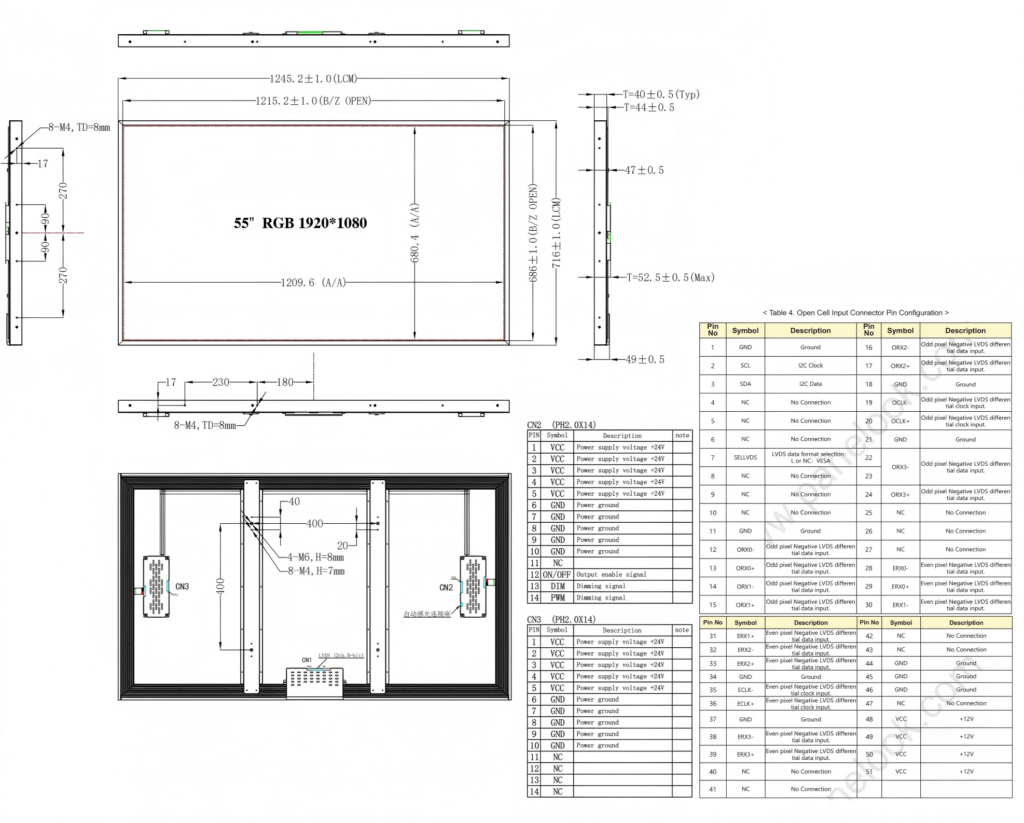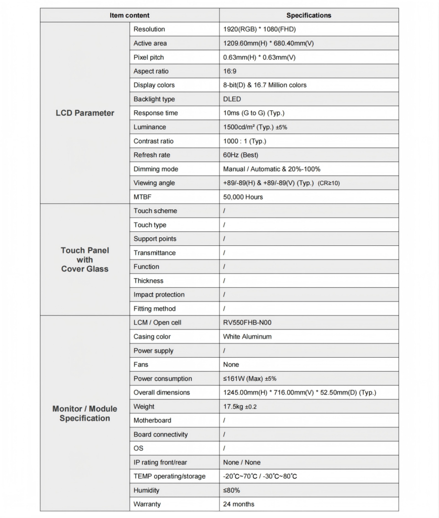 55.0″ Outdoor structure LCD modules 1500nits